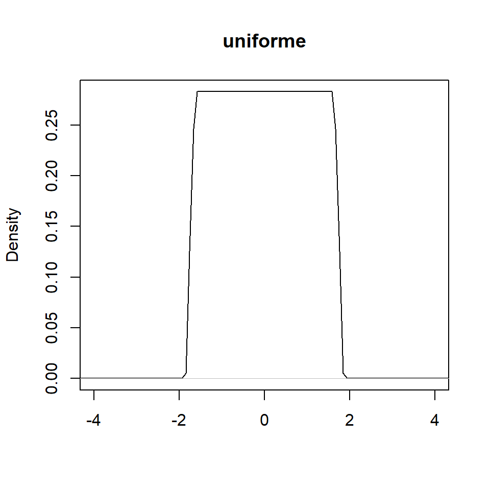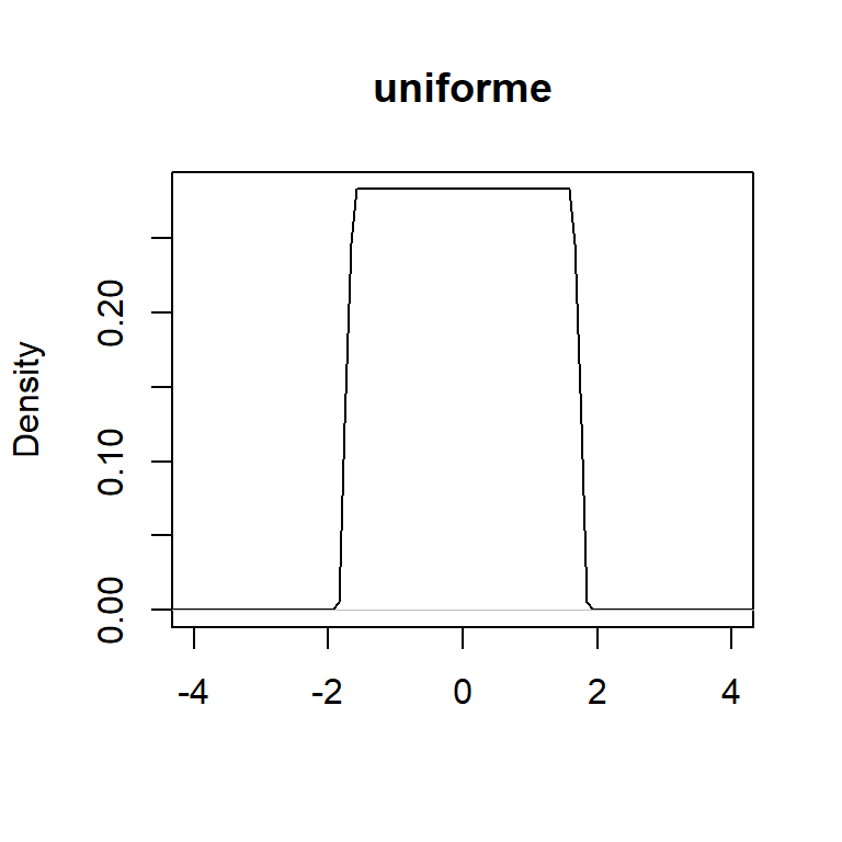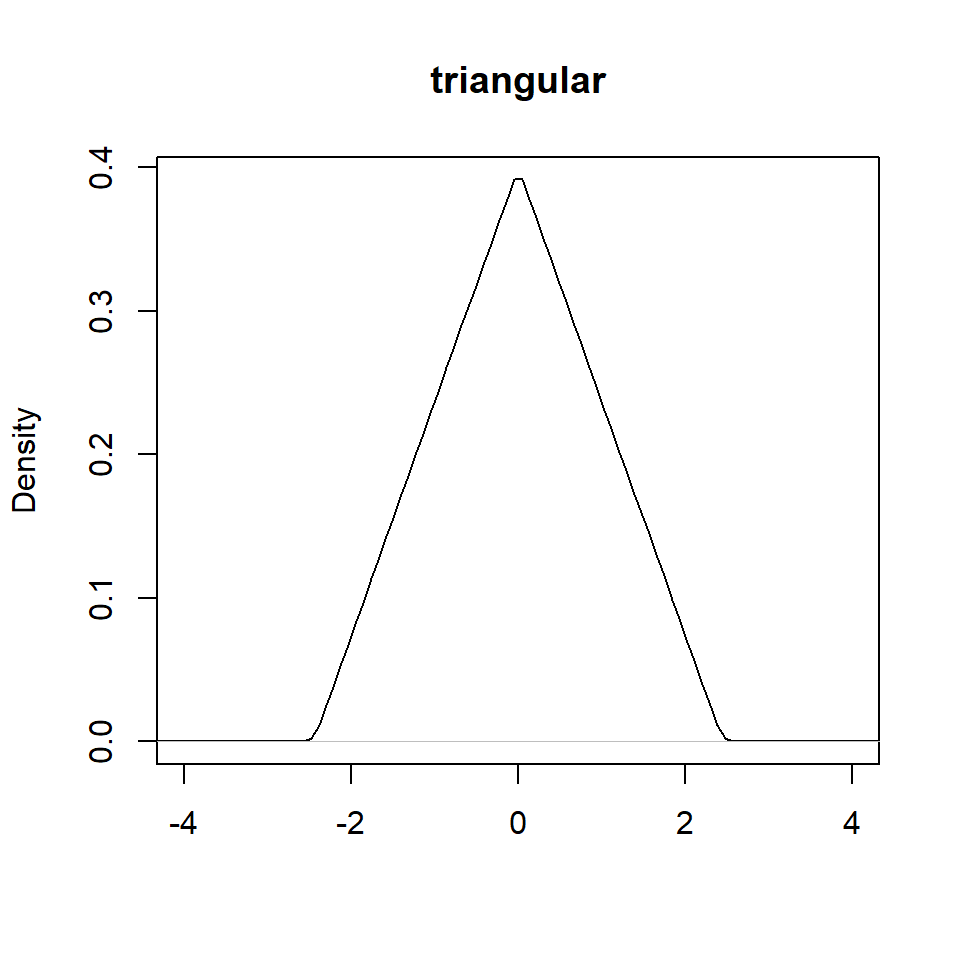 \[\begin{align} \hat{f}_k(x) &= \frac{1}{nh} \sum_{i=1}^n K\left( \frac{x-X_i}{h} \right) \\ &=\frac{1}{nh} \sum_{i=1}^n \frac{1}{2} I\left(\left|\frac{x-X_i}{h}\right|\leq 1\right). \end{align}\]