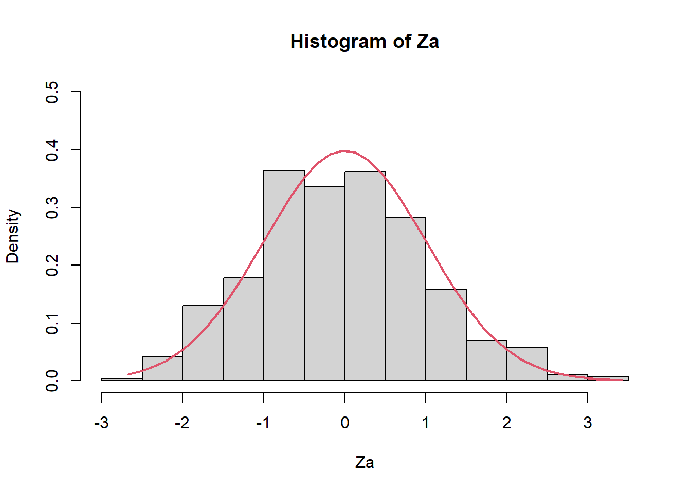hist(Za,prob=TRUE,ylim=c(0,0.5))