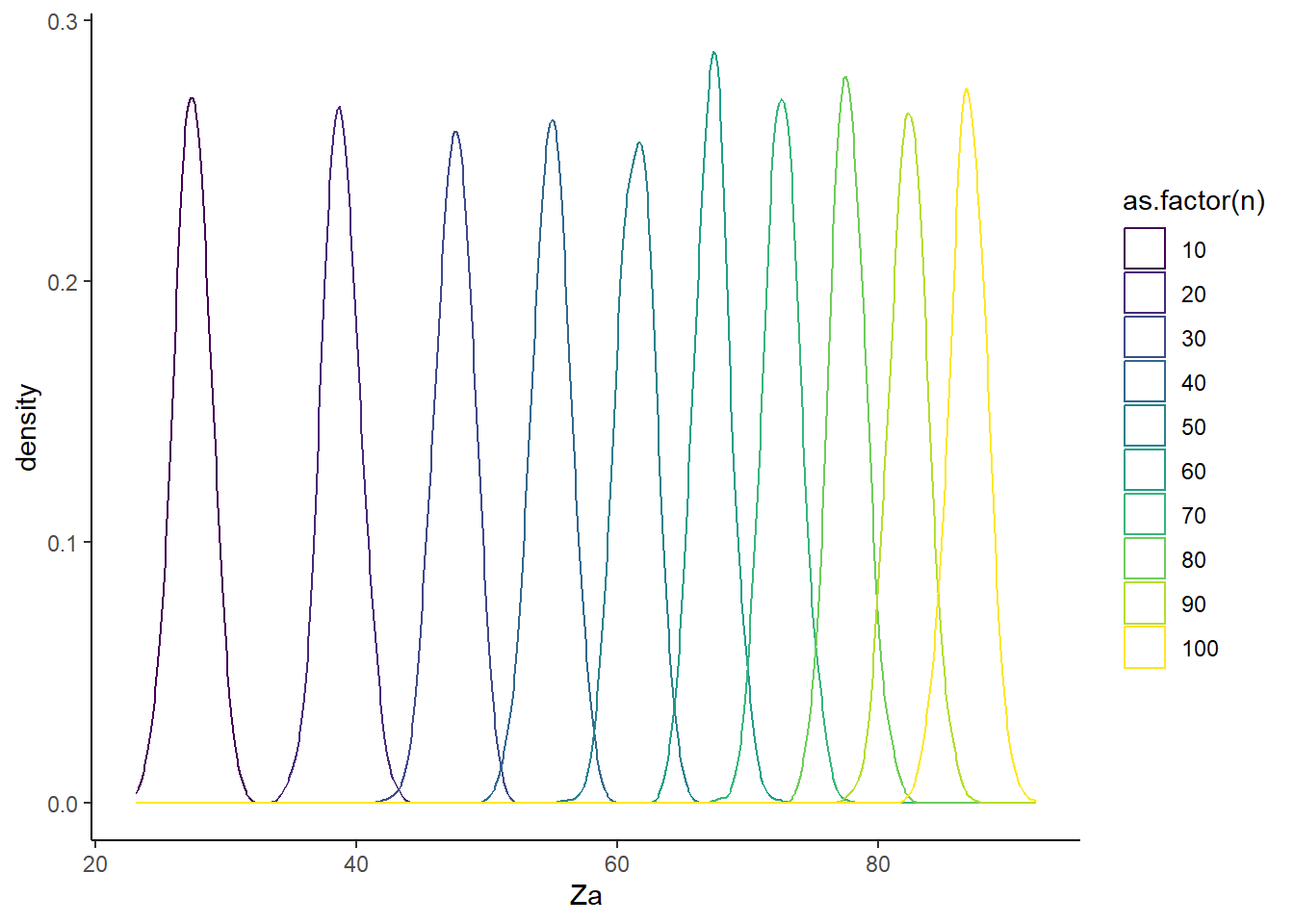 p2 <- ggplot(data=resultados, aes(x=Za, color=as.factor(n))) +