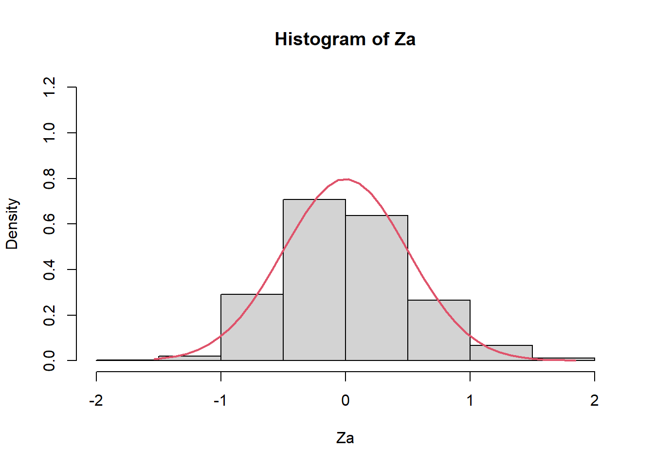 hist(Za,prob=TRUE,ylim=c(0,1.2))