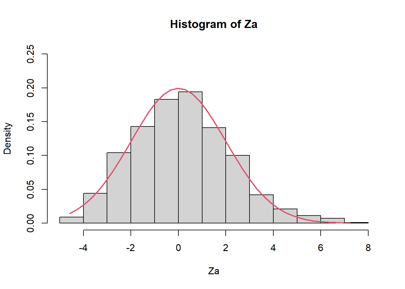 hist(Za,prob=TRUE,ylim=c(0,0.25))